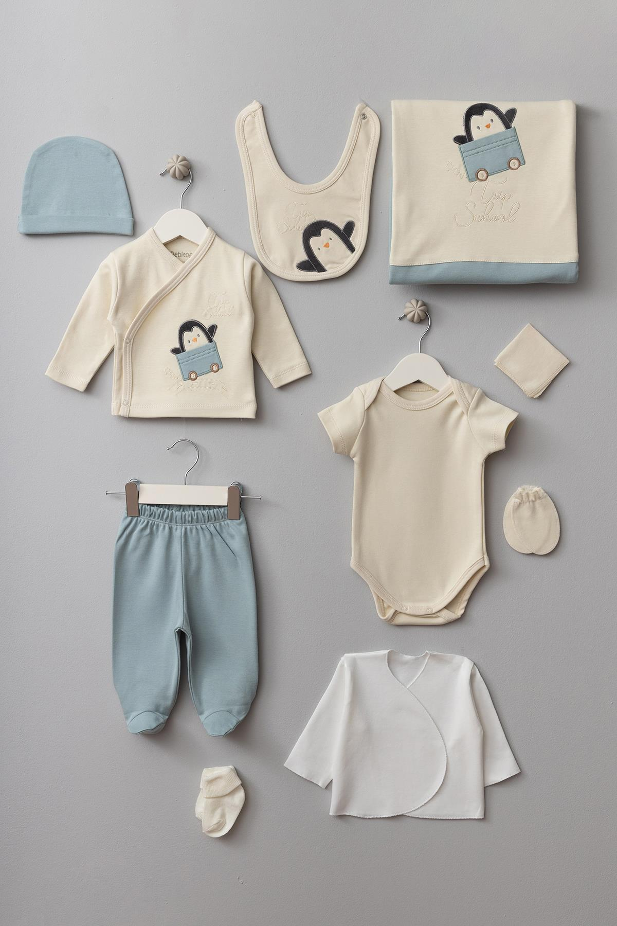 Arabalı Penguen Desenli 10 Parça Kutulu Yenidoğan Hastane Çıkısı Seti