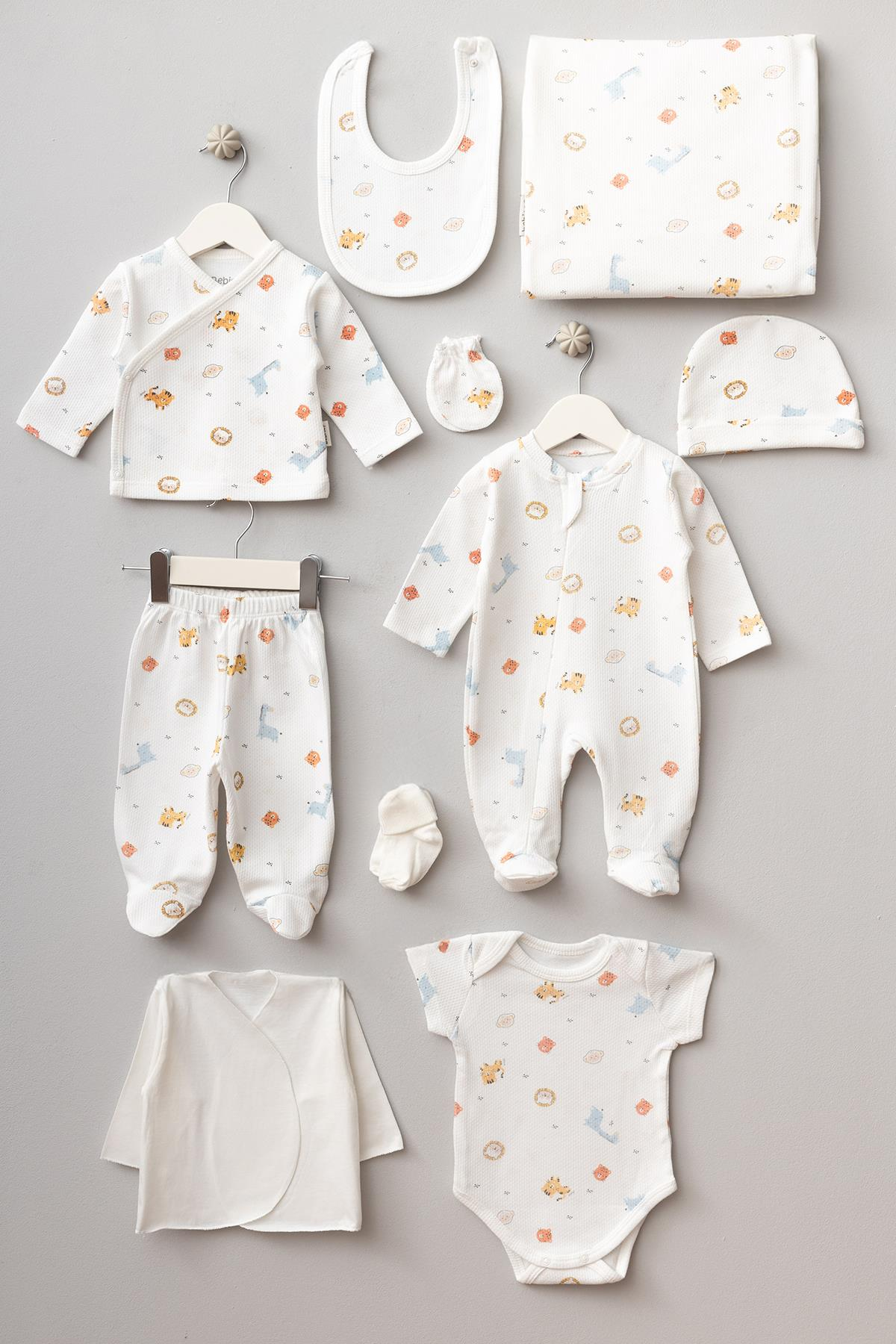 Ormanın Sevimli Canlıları Desenli 10 Parça Kutulu Yenidoğan Hastane Çıkışı Zıbın Seti