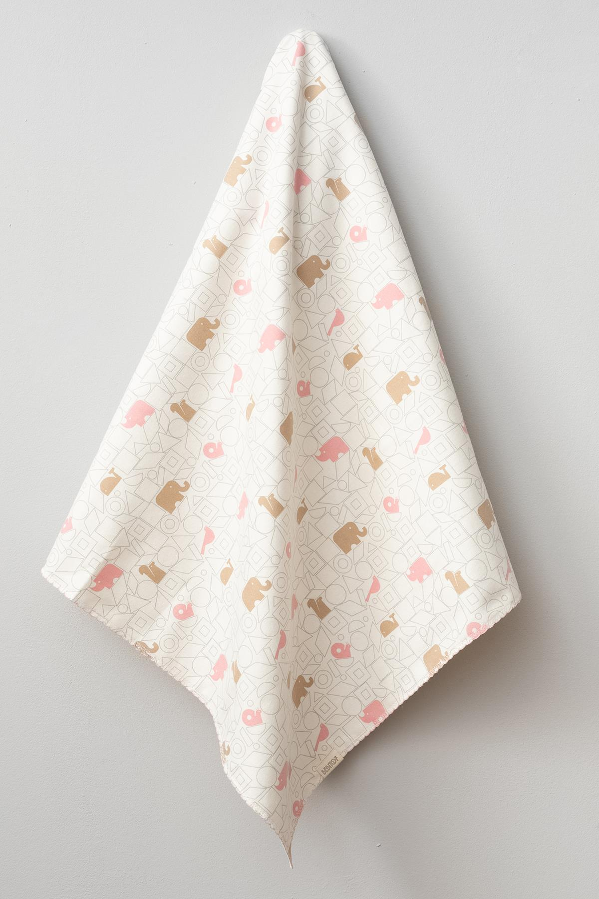 - Sevimli fil ve gergedan desenleriyle süslenmiş, bebeklerinize neşe katan organik pamuk battaniye.