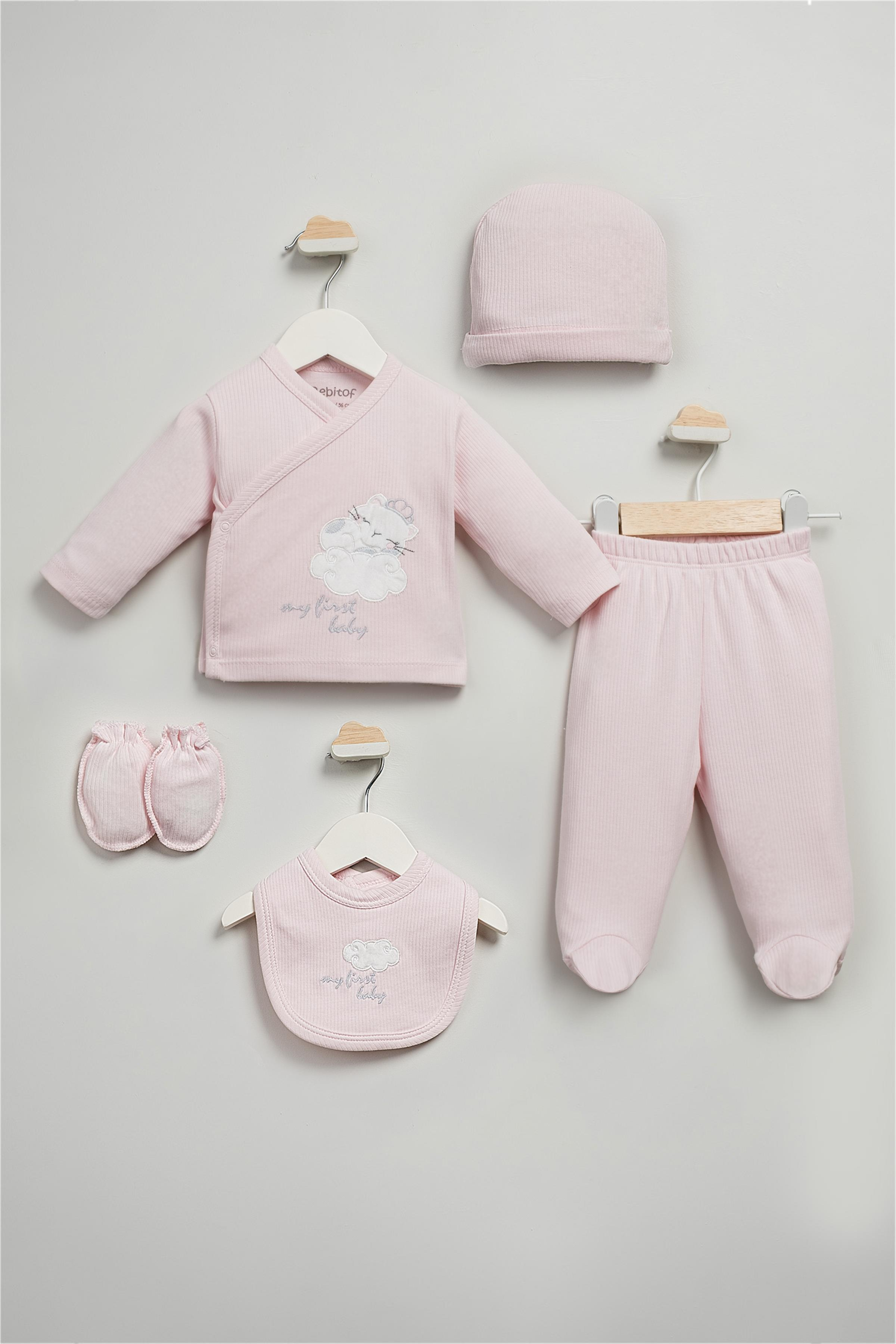 Sevimli Kedi Desenli 5 Parça Yenidoğan Hastane Çıkışı Zıbın Seti