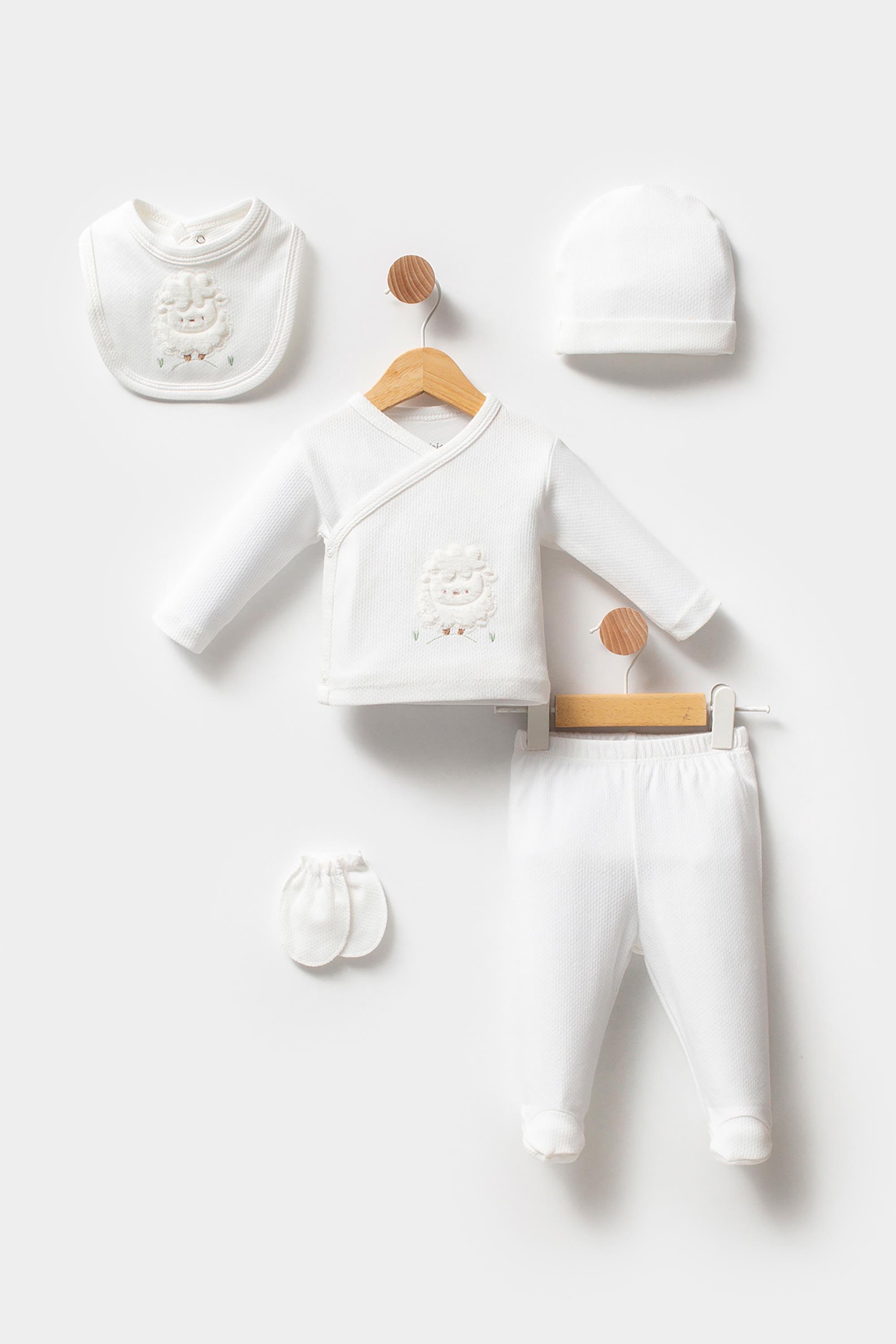 Sevimli Kuzu Desenli 5 Parça Yenidoğan Hastane Çıkışı Zıbın Seti