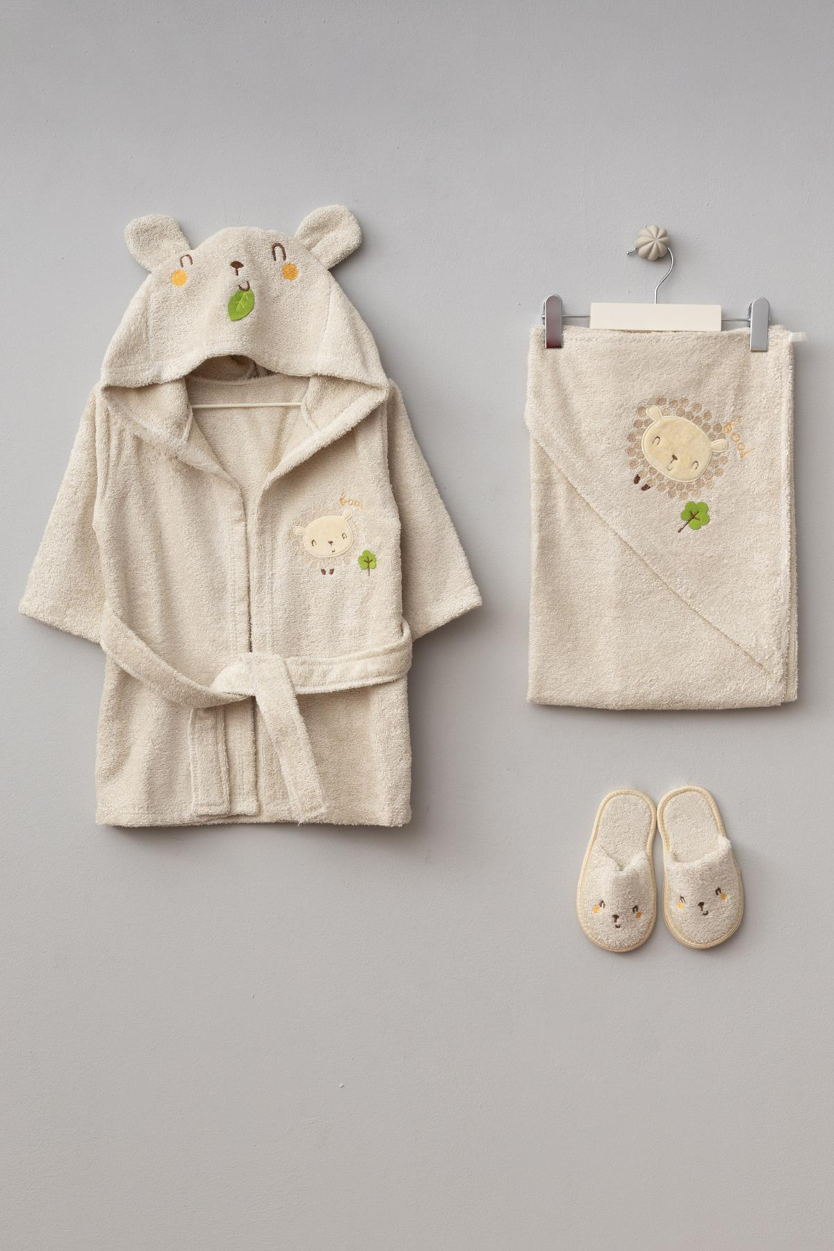 - Bebeğinizin cildine nazik dokunuşuyla %100 pamuk materyalden üretilmiştir, yumuşaklığıyla bebeğinizin konforunu artırır.- Sevimli kuzu deseniyle süslenmiş bu bornoz seti, miniklerin odasına neşe katar.- 0 ila 2 yaş arası bebekler için ideal boyutlarda tasarlanmıştır; rahatlıkla kullanabilirsiniz.- 30 derecede kolayca yıkanabilme özelliği sayesinde hijyenik kullanım sağlar ve pratik bakım imkanı sunar.- Kutulu ambalajıyla hem şık görünümü hem de güvenli taşıma avantajını beraberinde getirir.- Unisex tasarımı ile kız ya da erkek bebekler için uygundur; herkes tarafından tercih edilebilir. - Bebitof markasının yetkili temsilcisi olarak kalite standartlarına uygun üretim yapmaktadır.