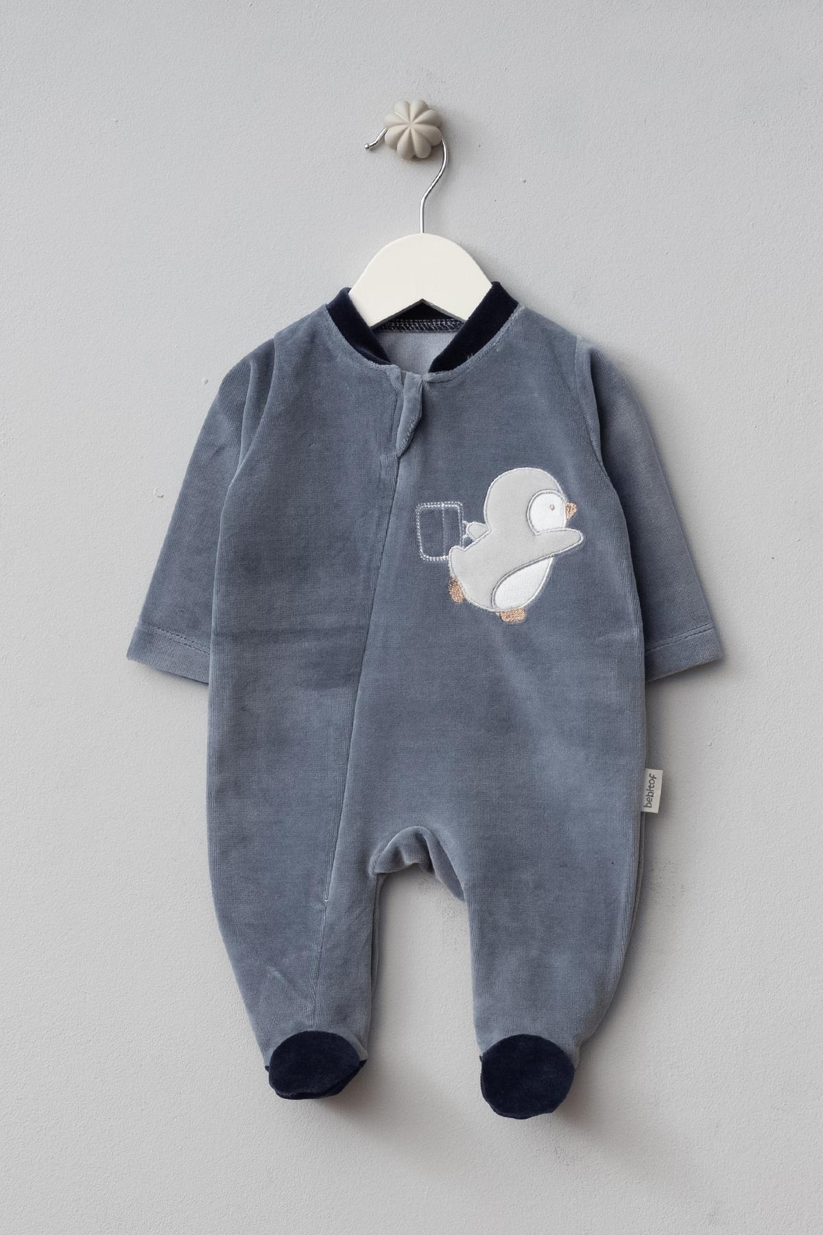 - Sevimli Penguen desenleriyle süslenmiş, bebeklerinize neşe katacak pamuklu tulum.
