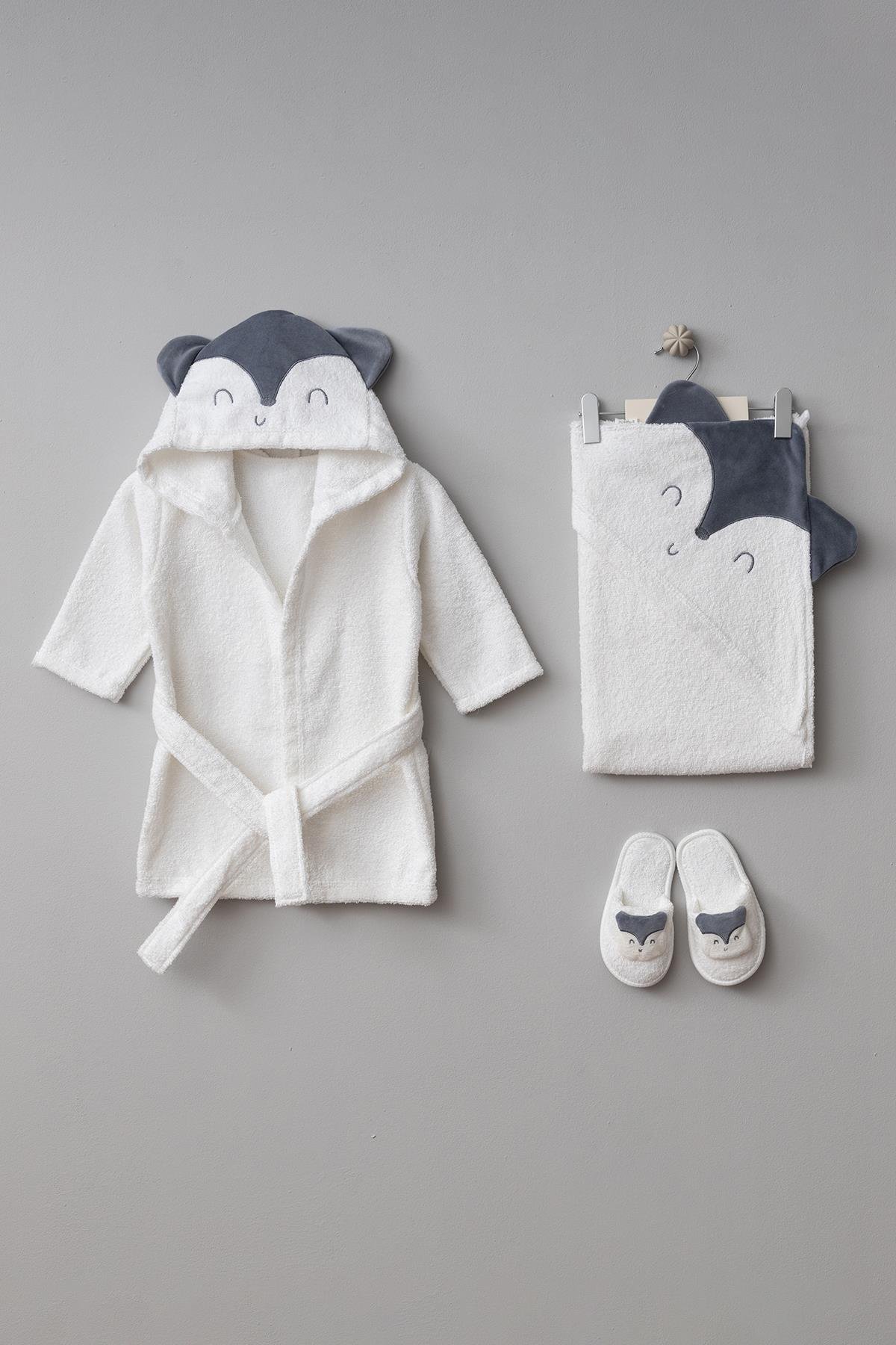 Tilki Desenli Kutulu Bebek Bornoz Seti